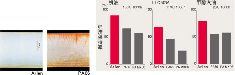 所谓Arlen,是通过向其基本分子链中导入芳香环,在实现了320℃熔点的高耐热性的同时,也解决了以往聚酰胺树脂吸水性弱的问题。