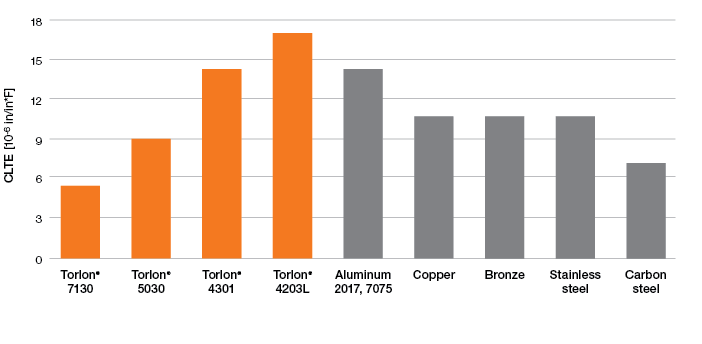 通过添加碳纤维和聚四氟乙烯(PTFE)等聚合物润滑剂来提高磨损性能。Torlon®派提供了很好的高温耐磨性。
