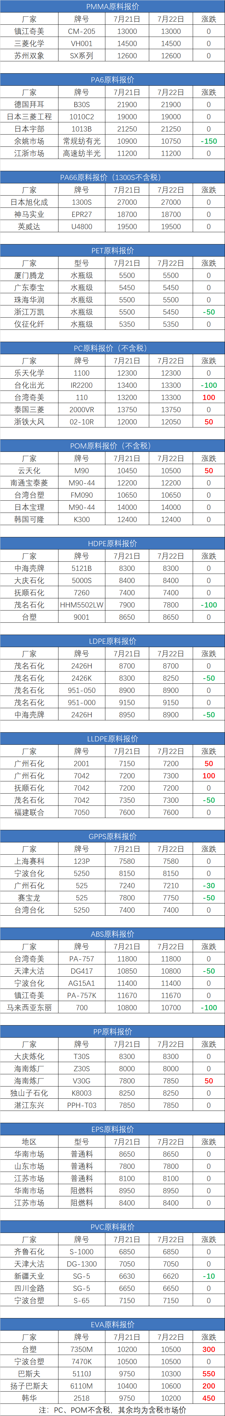 2020年7月22日塑胶原料实时报价