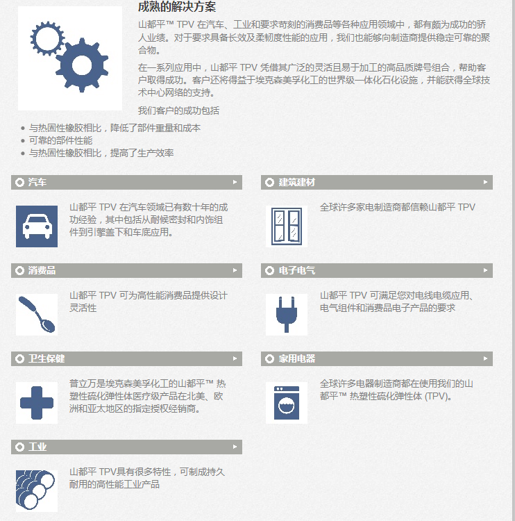 由于山都平 TPV 具有长效的耐老化性,并能在恶劣环境和高应力环境中表现出优异的性能,因此能够提供稳定的密封性能。山都平 TPV 具有如下成熟的物理特性