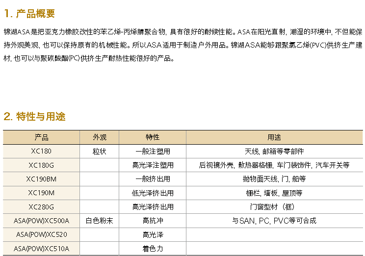 ASA的优点 1、ASA具有良好的机械物理性能 ASA和ABS的结构相似,由丙烯腈和丁二烯橡胶组成,其保留了ABS作为工程塑料所具有的极佳的机械物理性能。 2、ASA具有很强的耐候性 高分子聚合